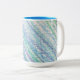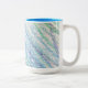 Eine Tasse mit den Farben blau, grün und lila.