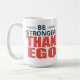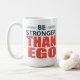 Dieses Design der Tasse enthält den Empowerment-Satz "SEIN STÄRKER ALS EGO", der mit jedem Schluck inspiriert und motiviert werden soll. Der Text wird in fett gedruckt, in Hauptstadt, mit "BE STRONGER" in marineblau und "THAN EGO" in hellen, aufmerksam ansprechenden Rot angezeigt. Der bedrängte Schriftart verleiht dem Design einen rohen, dynamischen Vorsprung, der Kraft und Widerstandskraft fördert. Subtile horizontale Linien über und unter der obersten Phrase schaffen Ausgewogenheit und zeichnete den Fokus auf die Nachricht. Dieses Design verbindet Einfachheit mit Wirkung und ist somit ideal für die tägliche Motivation bei Zuhause, im Büro oder als nachdenkliches Geschenk.