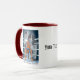 Eine Tasse mit einem lustigen Cartoon über Boxen. Originale Kunstwerke von DB Cartoon.
