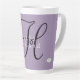 Lavendel lila Kaffee-Tasse mit Ihrem Namen in weiß und initial in schwarz. Farben können durch die Wahl der personalisierbaren und anpassbaren Optionen geändert werden. Design HAMbyWhiteGlove alias HAMbWG.
