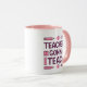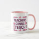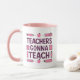 Phantastische Tasse mit dem Zitat "Lehrer werden lehren", umgeben von Schulmaterial