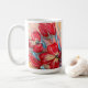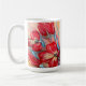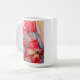 Die Becher zeigen lebendige rote Blume Set vor einem abstrakten, hellen Hintergrund. Die Blume mit ihren fett roten Blütenblättern heben sich deutlich hervor und verleihen dem Kunstwerk ein Gefühl von Wärme und Intensität. Der Hintergrund ist in hellen Farbtönen, Beige, Creme oder Pastelltönen gehalten, was eine beruhigende und ruhige Atmosphäre schafft. Die abstrakte Natur des Hintergrundes steht im Kontrast zu den detaillierten Blume und macht sie zum Brennpunkt des Gemäldes