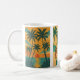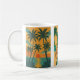Becher mit 3 Bildern am Strand, Palmen, Frau am Strand