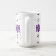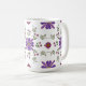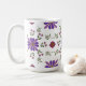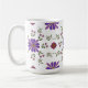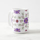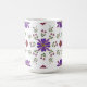 Lassen Sie Ihre Lieblingsbrauen mit dieser blühenden Tasse stilvoll schlürfen. Ideal, um Ihre Morgenroutine aufzuräumen! Dieses skurrile volkstümliche Blumenmuster umschließt die Tasse und zeigt lila und rote Blume mit goldenen Akzenten und frisch grünen Blätter vor dem weißen Hintergrund der Tasse.