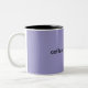 Eine lila Kaffee-Tasse mit schwarzem Innenbereich