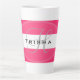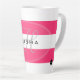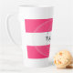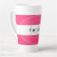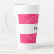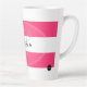 Rosa und weiße Streifen Latte oder Coffee Tasse mit Ihrem Namen in schwarz und initial in grau. Design HAMbyWhiteGlove aka HAMbWG