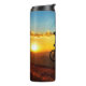 Personalisierte Wasserflasche mit Radfahrergrafik und Sonnenuntergang. Geben Sie an der Eingabeaufforderung den Namen Ihrer Person ein! Von HAMbyWhiteGlove aka HAMbWG