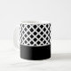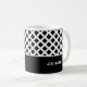 Keramik Kaffeekaffee Tasse wird mit einem Schwarz-Weiß-Kunstdruck gezeigt. Passen Sie dieses Element an, und ändern Sie den Beispielnamen in Ihren Namen.