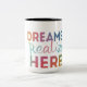 Eine stilvolle Tasse mit "Träumen realisieren hier" in vaberient und in multicolor