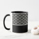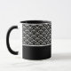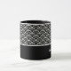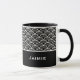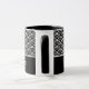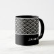 Keramik Kaffeekaffee Tasse wird mit einem Schwarz-Weiß-Kunstdruck gezeigt. Passen Sie dieses Element an, und ändern Sie den Beispielnamen in Ihren Namen.