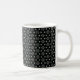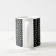 Schauen Sie sich genau dieses sich wiederholende Muster an und Sie werden sehen, dass jeder der Hauptkreise in sechs Teile geteilt ist, die von kleineren Kreisen umgeben sind. Sie sehen die Farben, aus denen jeder Kreis besteht: Aqua, lila, rot, orange und grün mit schwarzem Hintergrund.