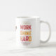 "Bleibe mit jedem Schluck aus unserer "Work Hard Shine Hard" Kaffee-Tasse motiviert. Diese Tasse, die aus hochwertiger Keramik hergestellt wurde, ist darauf ausgelegt, Ihre Lieblingsgetränke bei perfekter Temperatur behalten, während Sie Ihre täglichen Aufgaben bewältigen. Der kühne Slogan, der auf beiden Seiten prominent vertreten ist, dient als ständige Erinnerung, um die Mühe zu setzen und Ihre Errungenschaften lassen. Egal, ob Sie Ihren Morgen beginnen oder eine dringend benötigte Pause einlegen: Diese Tasse ist Ihr Weg für Inspiration und Stil."