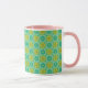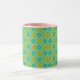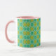 Das ist eine Tasse. Es hat ein raffiniertes Design mit einer harmonischen Kombination aus Gelb und Minze.