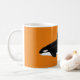 Orca Tasse auf Orange. Modernes Design