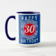 Tasse zum 30. Helle Farben und kühnes Design. Tasse zum Geburtstag. Design wird auf beiden Seiten wiederholt. 30 Jahre alt.