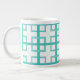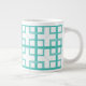Quadrate in drei Größen, platziert, um miteinander zu verbinden. Grosses Quadrat ist der Farbwert der gewählten Hintergrundfarbe und verbindet mit zwei kleineren Quadraten (etwas unterschiedliche Größen). Kleine Quadrate sind der leichteste Wert der Farbe. Solid weiß ist der "Hintergrund". Die aktuell gewählte Hintergrundfarbe kann geändert werden (Standardeinstellung ist Aqua)