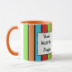 Farbenfrohe Tasse, den Tag zu beginnen und Ihre Kinder oder Mitarbeiter für eine kleine Zusammenarbeit fragen. Die Position des Textes ist anpassbar.