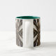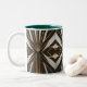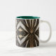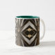 Mit dieser beeindruckenden Keramik-Tasse mit einem faszinierenden geometrischen Muster, das durch den Art-Déco-Stil der 1920er Jahre inspiriert wurde, stärken Sie Ihre Morgenroutine. Das Design zeigt ein symmetrisches, kaleidoskopisches Motiv in eleganten Schwarz-Braun-Tönen, kontrastiert mit einem unberührten, weißen Hintergrund. Dieses komplexe, Vintag inspirierte Design umschließt die Tasse und schafft eine mutige visuelle Aussage, die an den Glamour und die Eleganz der Roaring 20er Jahre erinnert. Das Innere der Tasse ist tief, reich grün, mit einer Touch von Farbe, die das monochrome Außendesign ergänzt. Diese Tasse eignet sich perfekt für Kaffee, Tee oder einen Ihrer Lieblingsgetränke. Sie ist nicht nur ein Trinkbehälter, sondern auch ein Kunstwerk, das Ihnen einen raffinierten Flair in Ihrer Küche oder im Büro bringen wird.