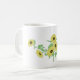Eine Tasse mit handgezeichnet Sonnenblumendesign. Geeignet für Geschenke oder den Alltag.