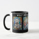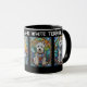 Vier wunderschöne Buntglaswiedergaben des West Highland White Terrier umgeben diese Tasse. Ein schöner Weg, um den Tag mit einem schönen warmen Getränk zu beginnen.