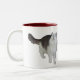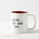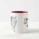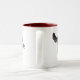 Es geht um eine Schwarz-Weiß-Katze, die auf den Rand der Tasse schaut. Text nach rechts Staaten "Vorsicht ... das sieht heiß aus"