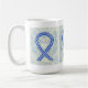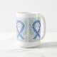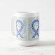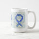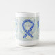 Die Tasse des Schutzengels zeigt das Gemälde eines Engels mit blauer und weißer Bewusstseinsbildung. Blaue und weiße Sensibilisierungsbänder unterstützen die amyotrophische Lateralsklerose (ALS). Blauer und weißer Engelsband-Kunstbecher oder Tasse können mit personalisierten Nachrichten versehen werden, um Spendenaktionen, Sensibilisierungsbechern oder anderen besonderen Veranstaltungen oder Anlässen Tasse zu geben.