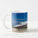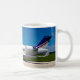 Eine gut aussehende Tasse mit dem Bild eines Bombardier Challenger am Flughafen, gestützt von einem tiefblauen Himmel. Ein perfektes Geschenk für jeden Flugzeugbegeisterten.
