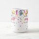 Beginnen Sie Ihren Tag mit dieser bunten Konfetti-Tasse. Die Vorderseite und die Rückseite dieser Tasse haben fröhliche Bänder und Konfetti in passenden Farben. Der spielerische Text lautet: "Fügen Sie jeden Tag ein wenig Konfetti hinzu".