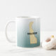 Delaware Staat Karte in gelb auf dem verlassen. Rechts ist der Text "Wilmington" "Delaware" "U.S.A." Hintergrund ist kolonial blau (Farbe der Staatsflagge) unten, Oben ist Ober dunkelblau. Personalisieren Sie Ihre Stadt/Stadt und die Hintergrundfarbe Ihrer Wahl.