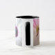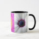 Eine atemberaubende blumengeschmückte Tasse mit drei verschiedenen Blume-Zentren.
