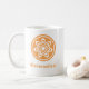 Tasse von Fun und Whimsical Floral Explosion in Orange. Diese lustige und kokette Tasse würde jedem Freund oder Verwandten in Ihrem Leben ein schönes Geschenk machen. Passen Sie dieses Design an, indem Sie den Text Ihrer Auswahl oder Änderung von Hintergrundfarben, Schriftart und Textfarben hinzufügen!