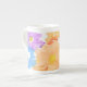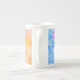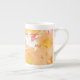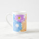 Eine weiche und weibliche Knochen-China Tasse mit einem Aquarellbild von verschiedenen farbigen Blume.