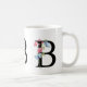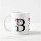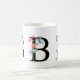 Eine personalisierte Kaffee-Tasse mit dem Buchstaben "B" Monogramm, mit dekorativen Aquarellbildern mit Blumen- und Blattbildern. Einfach mit Ihrem Namen anpassen oder ein einzigartiges Geschenk für Ihre Lieben schaffen.