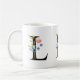 Eine personalisierte Kaffee-Tasse mit dem Buchstaben "L" Monogramm, mit dekorativen Aquarellbildern mit Blumen- und Blattbildern. Einfach mit Ihrem Namen anpassen oder ein einzigartiges Geschenk für Ihre Lieben schaffen.