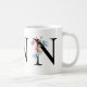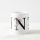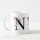 Eine personalisierte Kaffee-Tasse mit dem Buchstaben "N" Monogramm, mit dekorativen Aquarellbildern mit Blumen- und Blattbildern. Einfach mit Ihrem Namen anpassen oder ein einzigartiges Geschenk für Ihre Lieben schaffen.