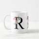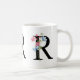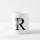 Eine personalisierte Kaffee-Tasse mit dem Buchstaben "R" Monogramm, mit dekorativen Aquarellbildern mit Blumen- und Blattbildern. Einfach mit Ihrem Namen anpassen oder ein einzigartiges Geschenk für Ihre Lieben schaffen.