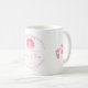 Feiern Sie Ihr erstes Weihnachtsfest als dreiköpfige Familie mit dieser zauberhaften rosa Tasse. Mit einem hübschen Design von Babyfußabdrücken, die mit einem Bogen verbunden sind, ist es ideal, um diesem besondere Anlass zu gedenken. Die eleganten Akzente und die herzliche Botschaft machen es zu einem schönen Sake für neue Eltern. Ideal, um heiße Kakao am Kamin zu trinken, fügt diese Tasse Ihren Urlaubstraditionen eine warme Touch hinzu.