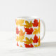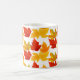 Die Tasse des Kaffees ist mit einem schönen Herbstblätterprint dargestellt. Passen Sie dieses Objekt an oder kaufen Sie, wie es ist.