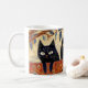 Eine skurrile Tasse mit drei schwarzen Katzen. Niedliche stilisierte Abbildung.