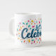 Diese lebendige Tasse zeichnet sich durch eine farbenfrohe Konfetti-Explosion in Blau, Rosa, Gelb und Grün aus. Der fröhliche Satz "Lass’s Celebrate!" hebt sich in kühnen, spielerischen Briefen hervor und ist somit perfekt für jede Geburtstagsfeier!