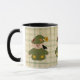 Diese Country Scarecrow-Tasse zeigt eine Maus, die eine Landschaft gezeichnet hat, mit einer kleinen Krähe auf der Schulter.