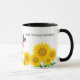 Diese Keramik Kaffee-Tasse wird mit einem niedlichen Country-Kuh und Sonnenblumen-Kunstdruck gezeigt.