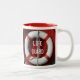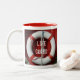 Foto eines hängenden rot-weißen Lebensringes mit angebrachtem Seil. Benutzerdefinierbarer Text lautet: "Rettungswache"