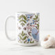 Diese Keramik Tasse zeichnet sich durch ein handgezeichnetes Design einer zarten Motte und Blumenmotive in einem wunderschönen Mais- und Olivgrün-Farbton aus.