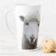 Niedliches Lamm Gesicht große Tasse. Aus dieser großen, weißen Latte-Tasse heraus blickt man auf das süße Gesicht eines Schafes. Schafft einen Schaf-Bauer, Wollsammler und Faserkünstler. Die Tasse ist auch kurzer.