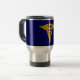 Medizinische Tasse. Diese Tasse ist mit einem großen Goldkadukus auf dunkelblauem Hintergrund dekoriert. Eine tolle Geschenkidee.
