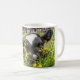 Kaffeemaschine mit Kalbsbild, das sich unter den gelben Blüten befindet