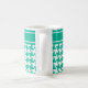 Eine stilvolle Coffee Tasse, mit einem Hahnentrittmuster Karo-Muster in Smaragdgrün und weiß. Am oberen Rand des Musters befindet sich ein schlichtes Band, das mit einem Namen oder Text personalisiert werden kann - oder leer verlasse.