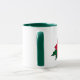 Eine Tasse mit einer orangen Weihnachtspoinsettie, dunkelgrüne Blätter und eine schwarze Kontur
