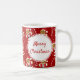 Tasse mit einem lächelnden Lebkuchen Sankt und Zuckerstangemuster und die Wörter "frohe Weihnachten". Die Wörter können als Sie besonders angefertigt werden mögen.